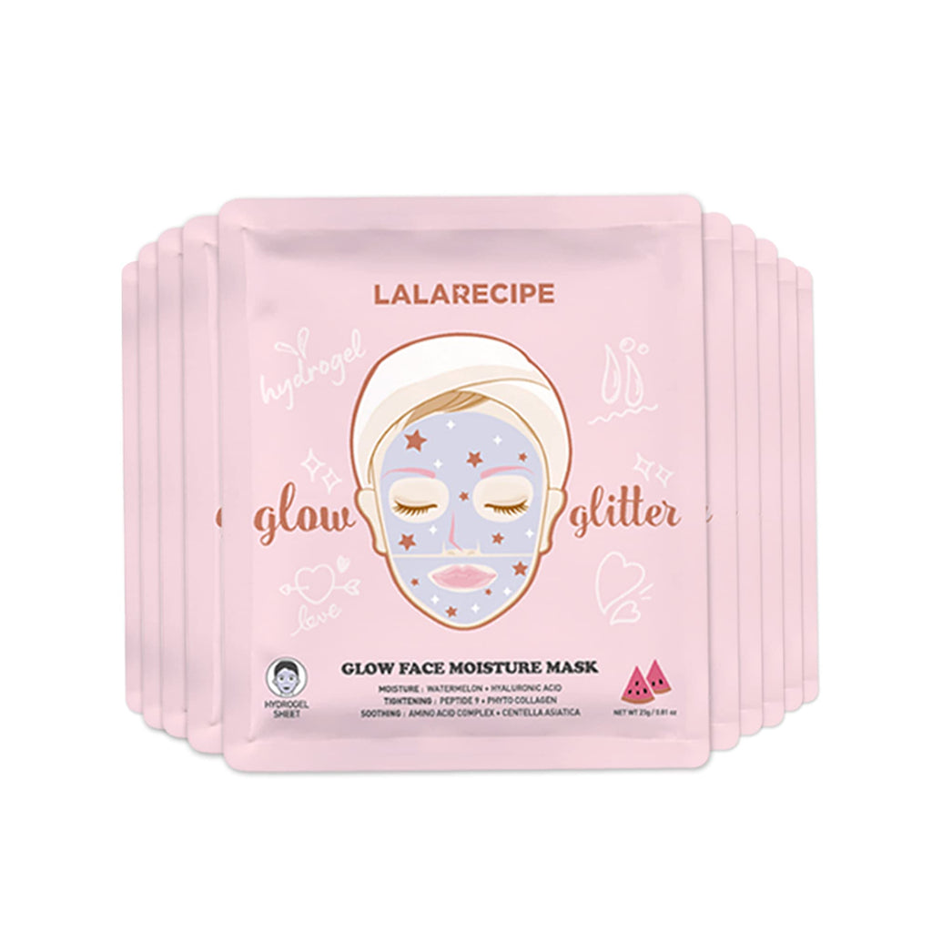 Glow Face Moisture Mask Hydrating & Cooling Hydrogel Facial with 8-Hyaluronic Acid, Watermelon & Peptides Vegan Korean Skincare for Radiant Skin (Pack of 10)