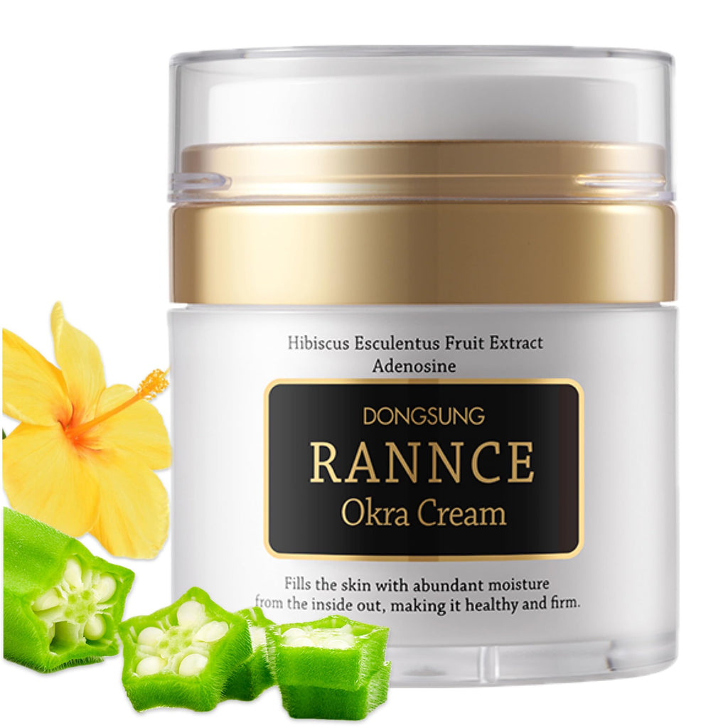 Rannce DONGSUNG Okra Cream, 1.76oz Vegan Mucin Cream form Korea Anti Aging Face Cream with Functional Okra Extracts, Wrinkle Improvement, Hydrates and Moisturizes Skin, Improves Firmness, 50g
