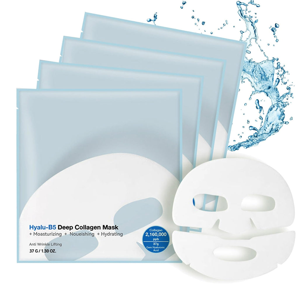 4 PACK Deep Collagen Overnight Mask, Bio-collagen Face Hydrogel Mask Korean Skincare Facial sheet masks for lifting, firming, and Elasticity Improvement (Hyalu-B5 Mask)