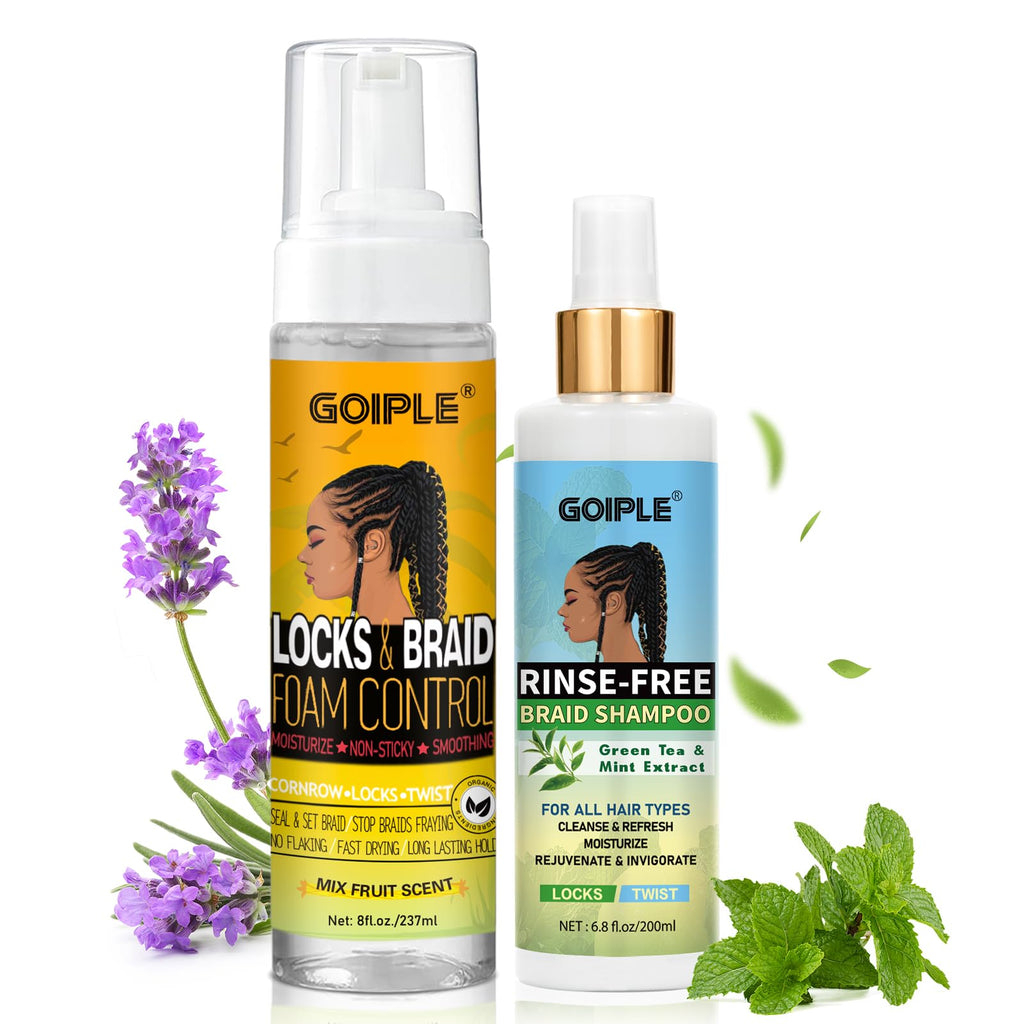Braid Foam Control Mousse Braiding Mousse No-Water Braid Shampoo for Braids, Twist, Locs - Hair Foaming No Flake Extra Hold - Rinse-Free Dreadlock Shampoo for Build-Up, Odor, Itch & Flakes(2PCS)