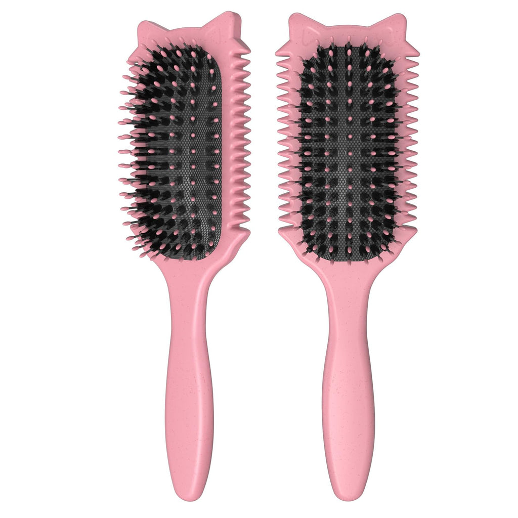 Curl Defining Brush, Curly Hair Brush for Curls Waves & Coils, Define, Volumize, Detangle Women Girls Curls, Reduce Hair Pulling Frizz, Fun Cat-Head Design, Pink, 1PCS