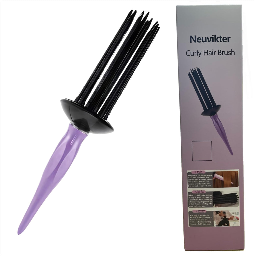 Curly Hair Brush with 17 Teeth, Curl Defining Brush, Curling Roll Comb, Perfect for Hair Salon and Home Use (Purple)