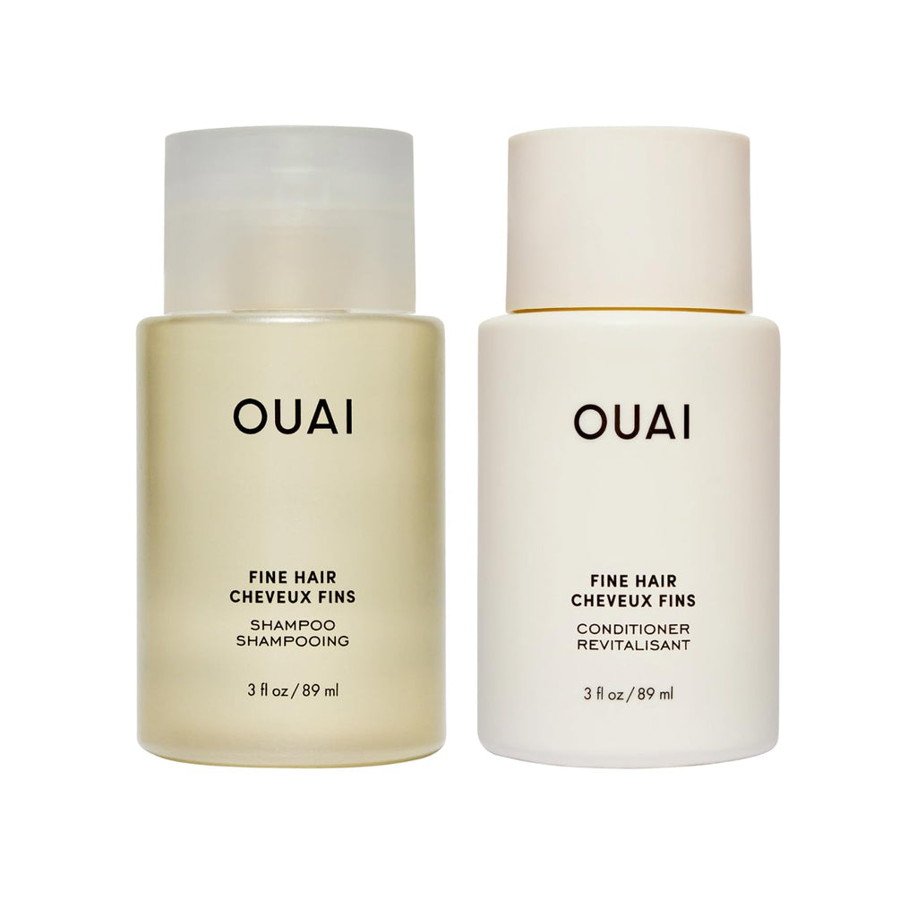 OUAI Fine Hair Shampoo & Conditioner Set, Travel Size - Volumizing Shampoo & Conditioner - With Strengthening Keratin, Biotin & Chia Seed Oil - Sulfate, Paraben & Phthalate Free (3 Oz)