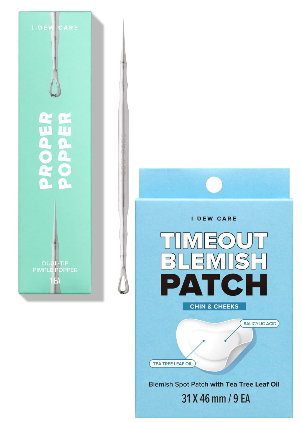 I Dew Care Dual-Tip Pimple Popper - Proper Popper, 1 EA + Hydrocolloid Acne Pimple Patch - Timeout Blemish Chin & Cheeks, 9 Count (31 x 46 mm) Bundle