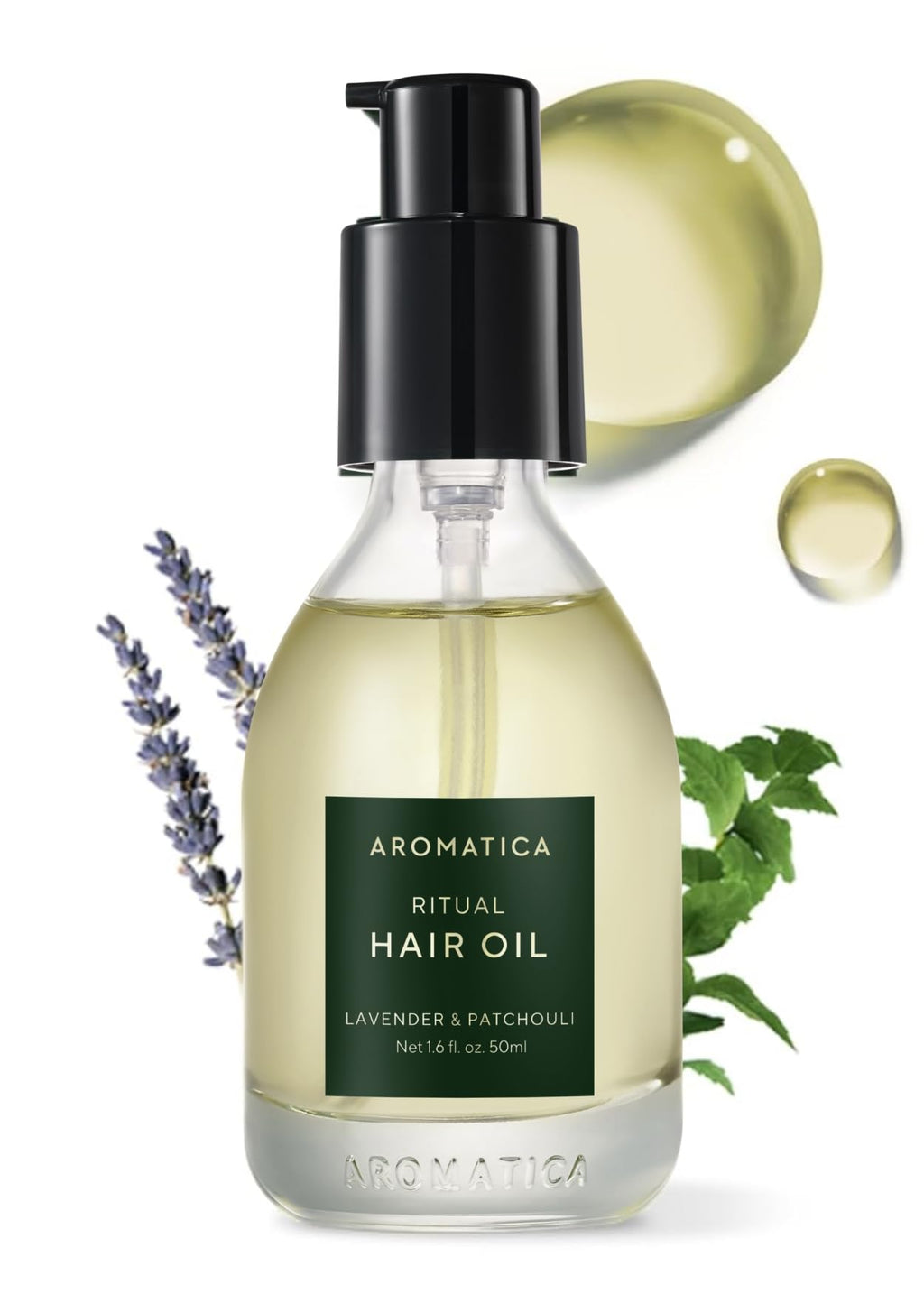 AROMATICA Ritual Lavender & Patchouli Hair Oil - Adds Shine and Smooths Split Ends - Blow out hair oil for damaged hair - Nourishing for Dry Curly Hair - Silicone-Free & EWG verified (1.6 Fl Oz)