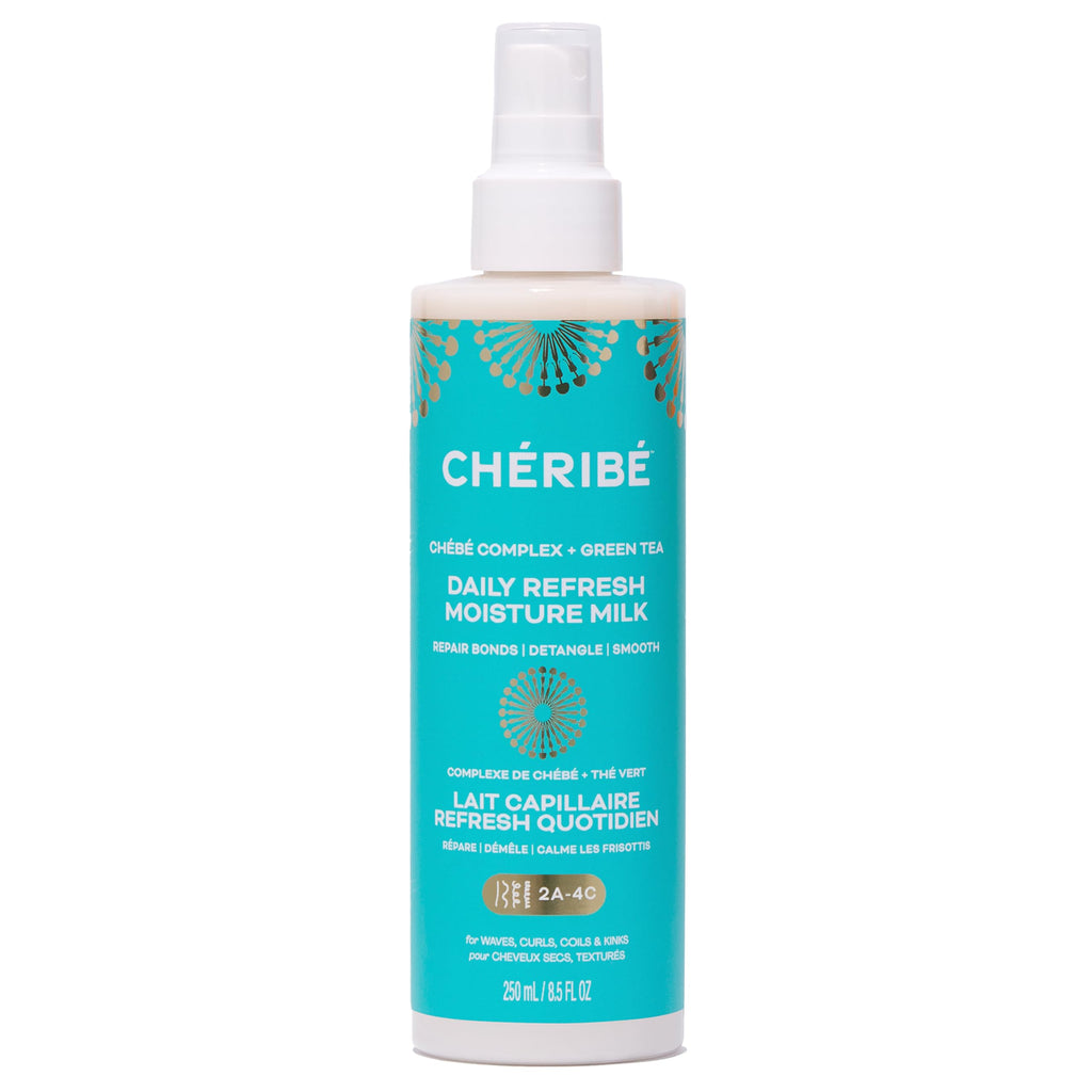 Cheribe Daily Refresh Moisture Milk with 100% Chebe Complex + Green Tea & Vitamin E, Anti Frizz & Detangling Leave-In Spray For All Hair Textures 2A-4C & Porosities, Sulfate Free, 8.5 fl oz