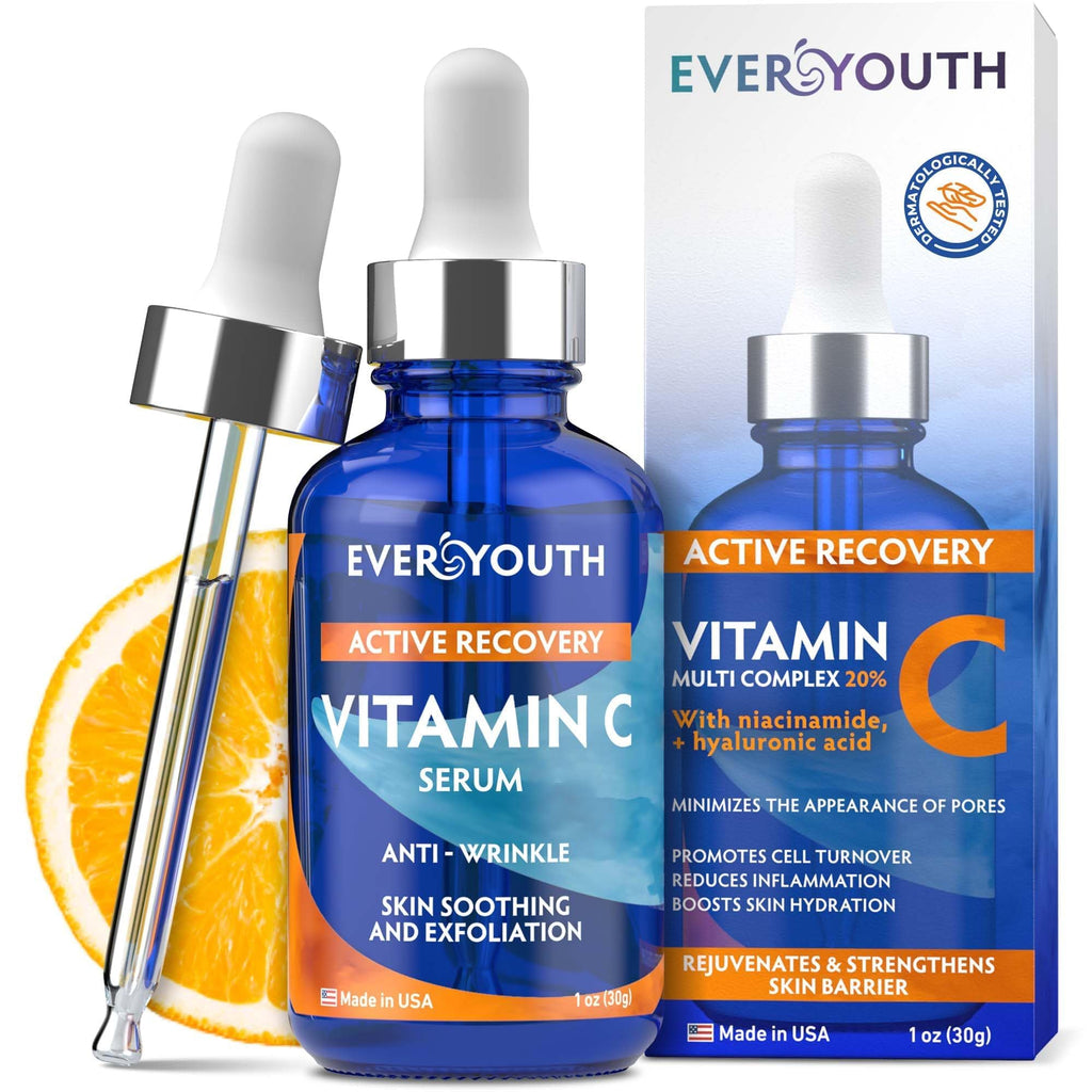 Vitamin C Serum for Face 20% Hyaluronic Acid, Niacinamide, Vitamin E, Collagen Peptides - Skin Brightening Solution for Wrinkles, Dark Spots, Fine Lines - Anti Aging Stem Cell Serum for Face, 1 oz