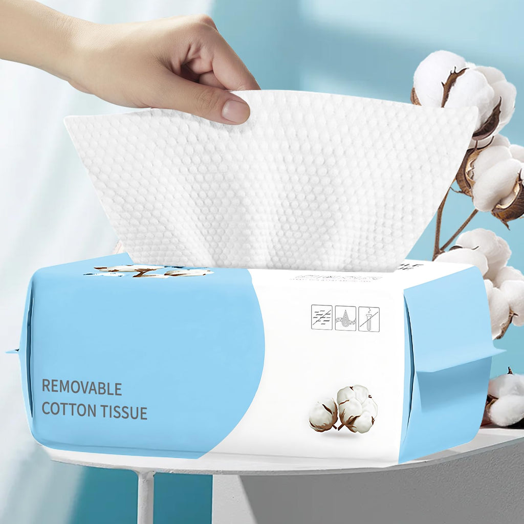 100 Count Disposable Face Towel, Biodegradable Cotton Facial Dry Wipes, Super Soft & Thick Face Cloth, Lint-Free Face Towelettes for Sensitive Skincare, Makeup Remover Dry Wipes, Facial Cleansing