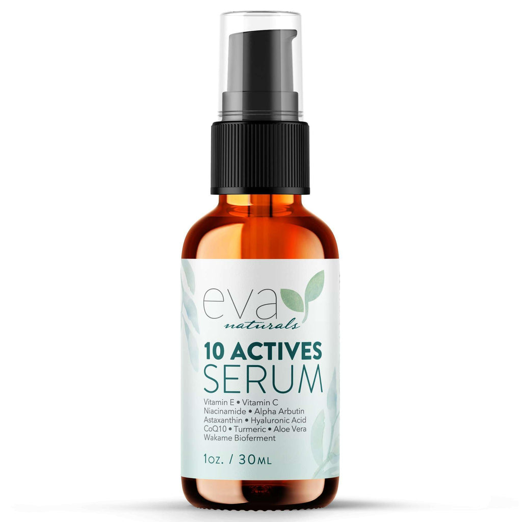 Eva Naturals 10 Actives Serum Vitamin C, Niacinamide, Hyaluronic Acid, Turmeric, CoQ10 Natural Anti Aging Face Serum for Dark Spots, Wrinkles, Acne, Skin Care & Facial Spot Remover