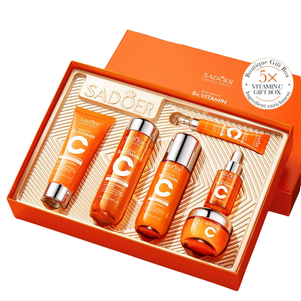 For SADOER 5X Vitamin C Skin Care Gift Box Set,Face Treatment Collection,Skin Care Kit,Cleansing Moisturizing Skin Care,Contains cleansing lotion toner toning facial creams eye creams serum