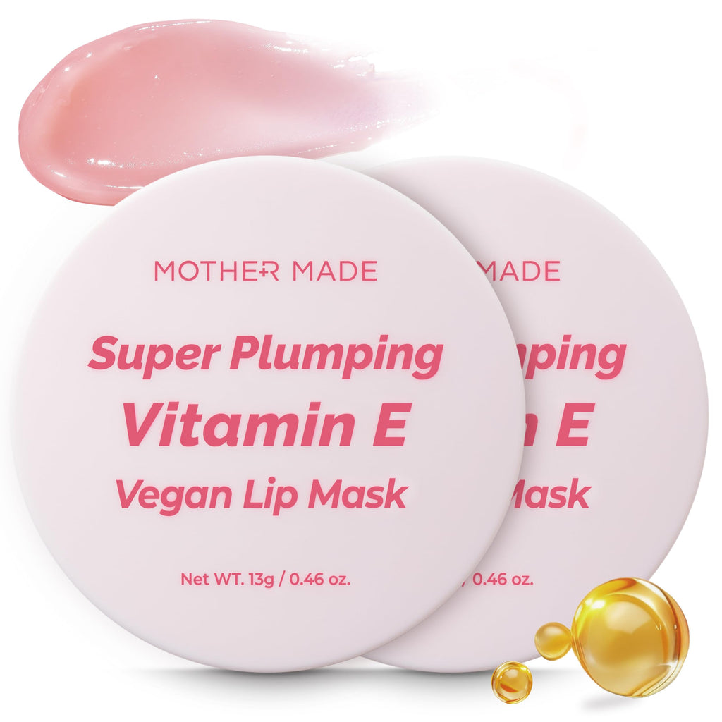 MOTHER MADE Lip Care Balm Plumping Vitamin E Vegan Lip Sleeping Mask 2EA, with Organic Shea Butter, Natural Oils, Vegan Collagen, For Dry Chapped Lips, Stocking Stuffers, Korean Skin Care